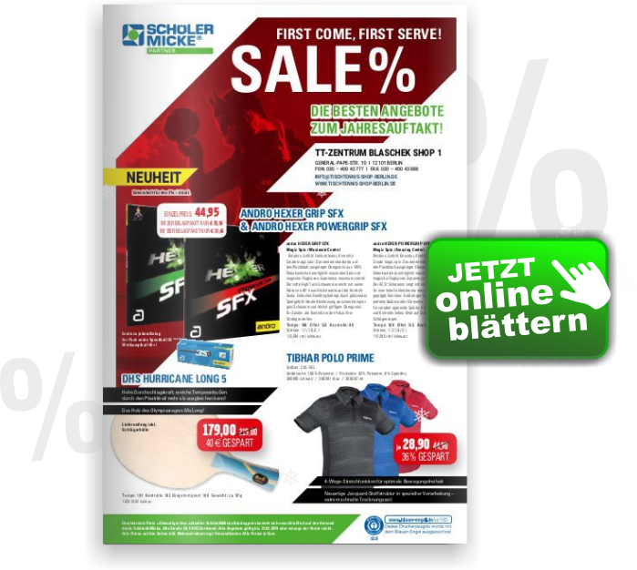 Bei Fragen zu den einzelnen Produkten beraten wir Euch gerne persönlich an unseren beiden Standorten, telefonisch unter 030 – 400 43 777 oder per Email an info@tischtennis-shop-berlin.de. Die Öffnungszeiten und Anfahrtsskizzen findest Du hier.